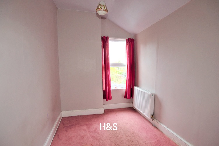 A double bedroom with a double glazed window to the rear elevation, central heating radiator and built in storage cupboard.