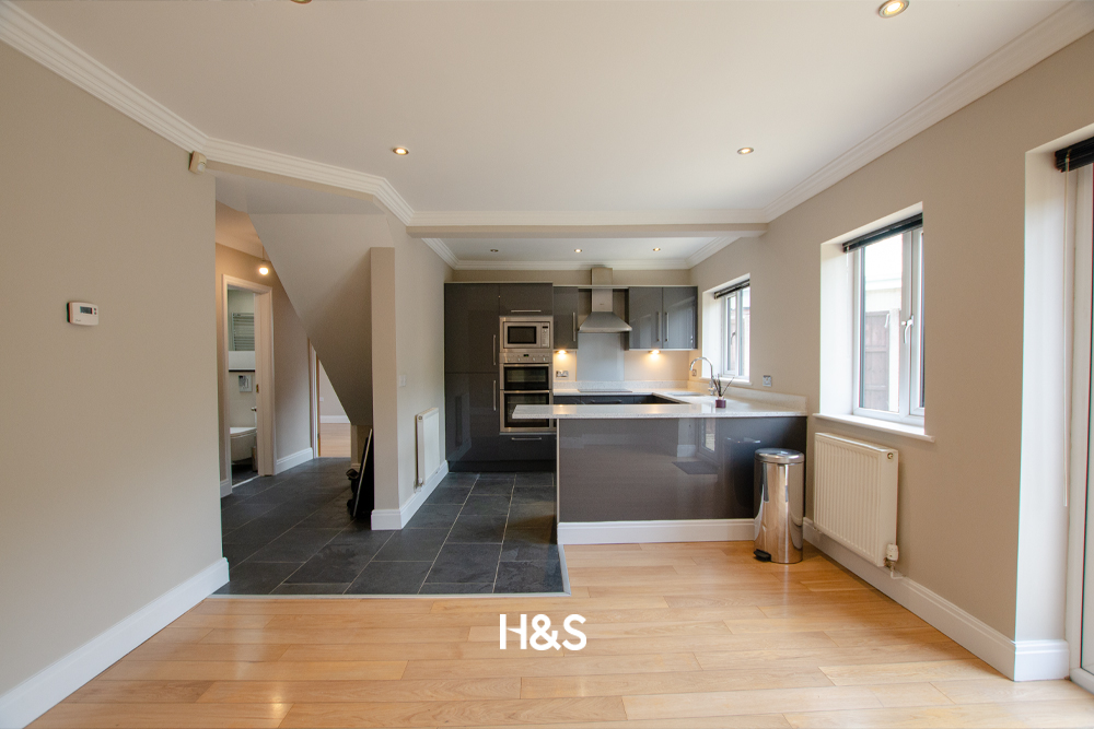 The hallway has hardwood flooring and is flows through the centre of the property. The hallway connects the front of the house which boasts the lounge and bedroom three with the sociable kitchen diner, bathroom and further bedrooms to the rear.