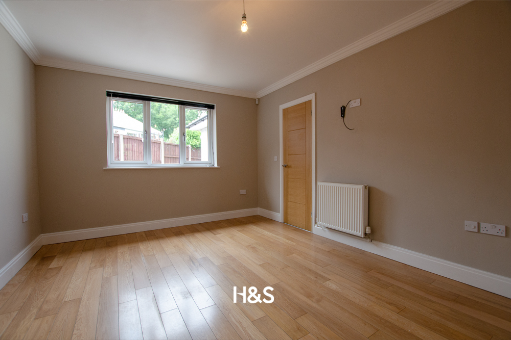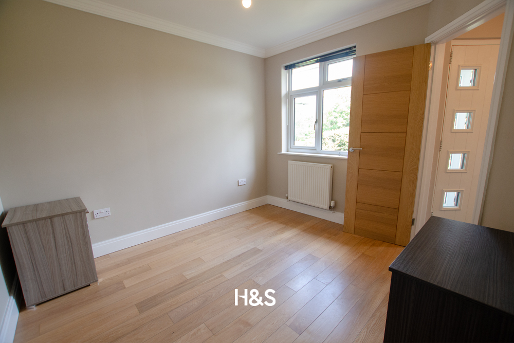 Located to the right side of the hallway at the front elevation the second bedroom or home office has a double glazed window to the front elevation and hardwood flooring throughout. A versatile space which can be used for a number of different purposes.
