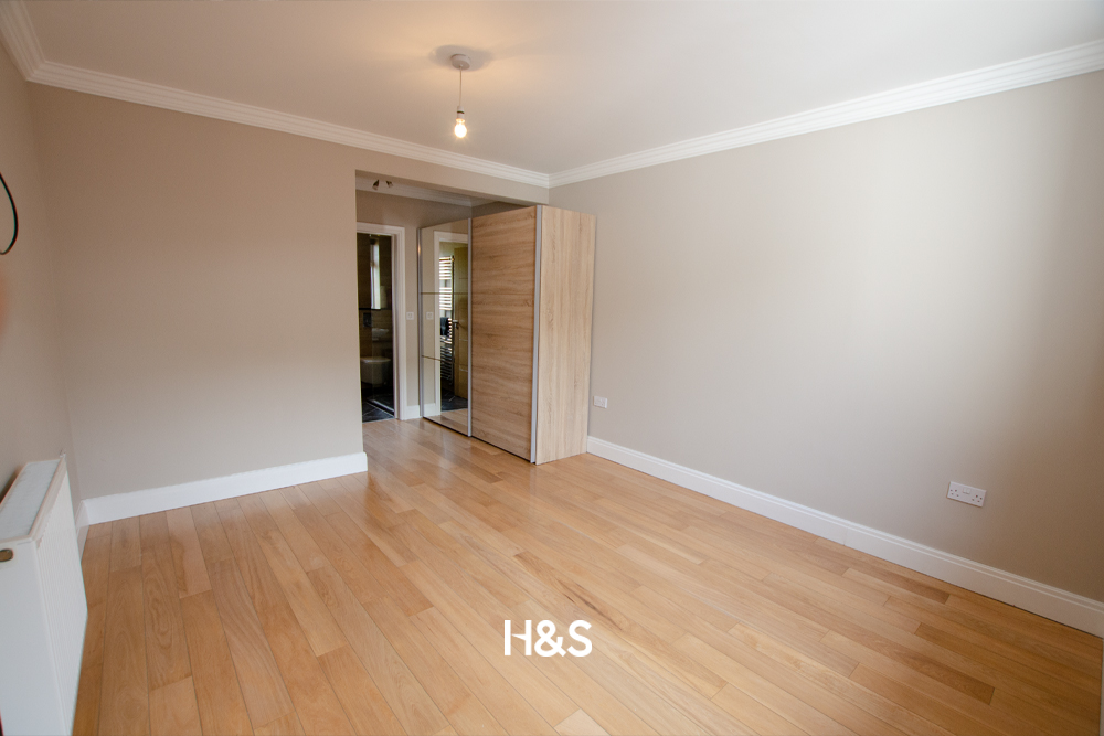 Located off the hallway the master bedroom has hardwood flooring throughout, a double glazed window to the rear elevation, TV point, built in wardrobe with doorway into en-suite shower room. The bedroom is located towards the rear left elevation of the property and provides privacy for the occupant.