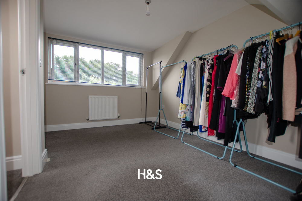 The bedroom is located by using the stairs off the hallway, There is a double glazed window spanning the rear elevation of the room and restricted height within the eaves towards the front elevation. There is further eaves storage cupboards either side of the bedroom doors. One of the storage cupboards houses the solar power control panel.