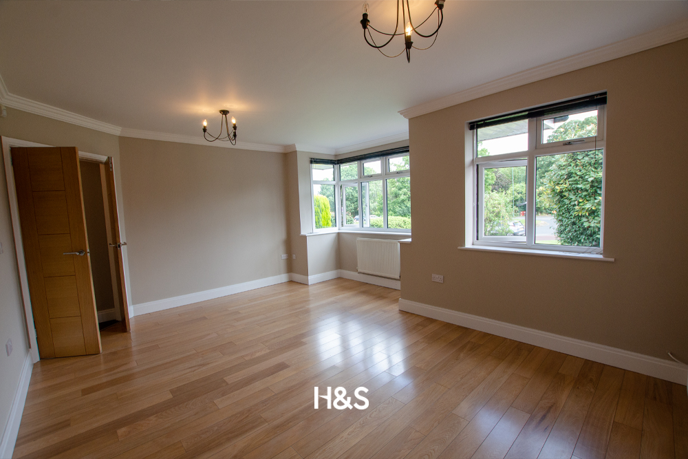 The property is located on an elevated corner plot between Castle Lane and Lode Lane which serves as the main transport link between Solihull town centre and the Coventry Road. The fore garden wraps around the forward boundary with a large brick paved driveway which curves upwards leading to the garage. There is well appointed brick walls to the shared boundary and established vegetation leading around the lounge up to the entrance porch.