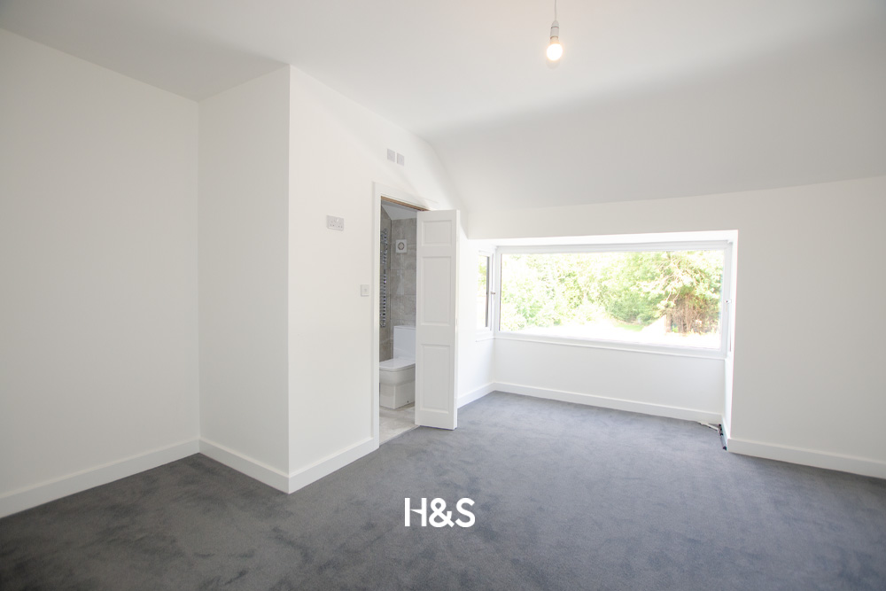 A large master bedroom with a double glazed window to the rear elevation and a central heating radiator. There is a door to the en-suite.