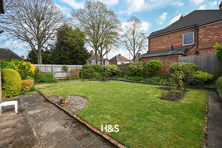 A private south facing rear garden with a slabbed patio area leading to the lawn and providing access to the garage. There is raised borders with mature shrubs and bushes with fencing to boundaries. There is an outside toilet with shed and a gate providing access to the driveway