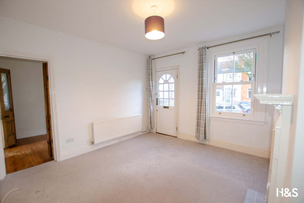 Double glazed sash window to the front elevation. Doors to dining room and stairs, original feature fireplace.