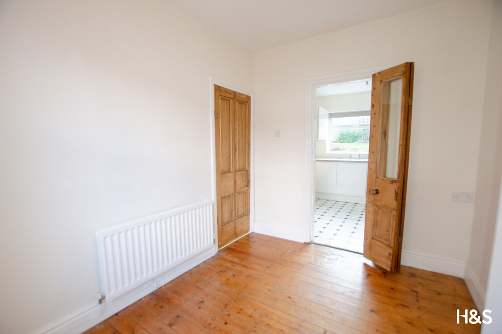 Double glazed sash window to the front elevation. Concertina wooden door into kitchen, concertina wooden door into lounge.