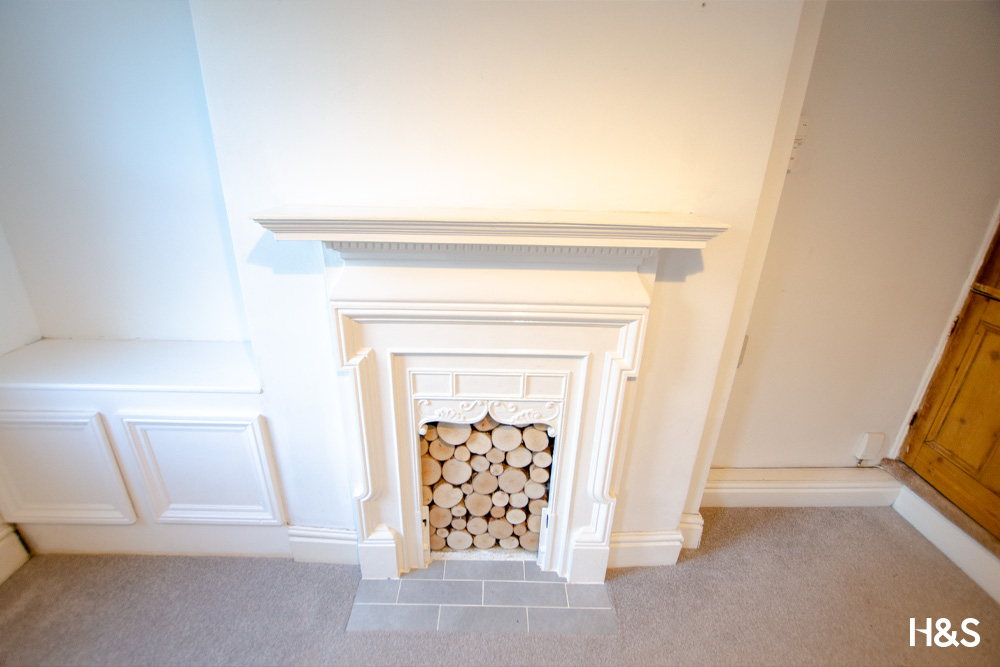 Double glazed sash window to front elevation, feature fireplace, door to storage cupboard, obscure single glazed window to stairwell and door to landing.