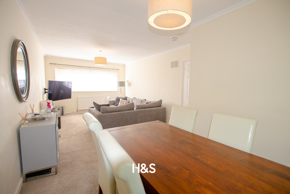 A large dual aspect lounge benefitting from two double glazed windows, two central heating radiators, a lounge area and dining area.