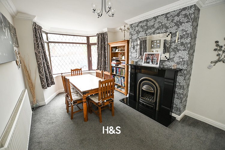 Being used as a dining room having a stunning feature fire place with inset fire, a double glazed bay window to the front and a central heating radiator.