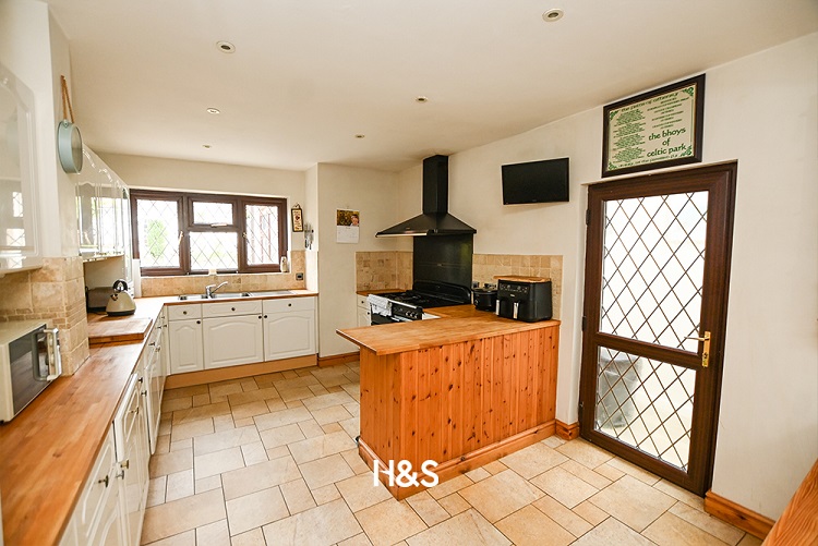 The extended kitchen offers a perfect sized kitchen for entertaining, comprising of a range of wall and floor base units with worksurface over incorporating an inset sink, dishwasher and fridge freezer. There is space for a rangemaster cooker, a double glazed window overlooking the garden and a door to the side leading to the utility room.