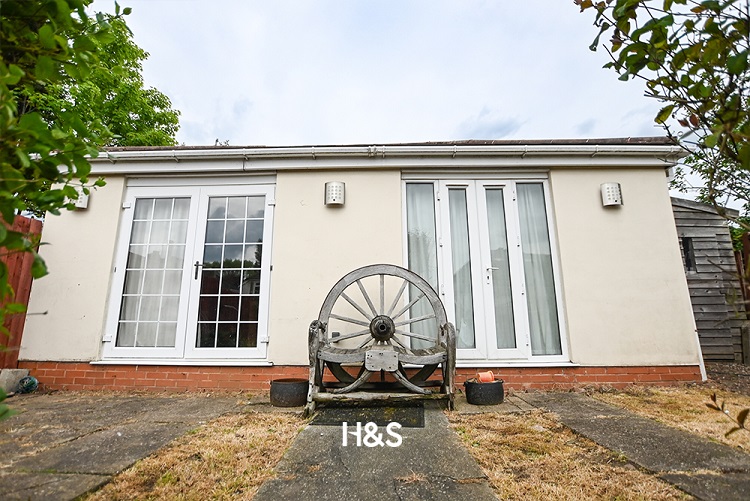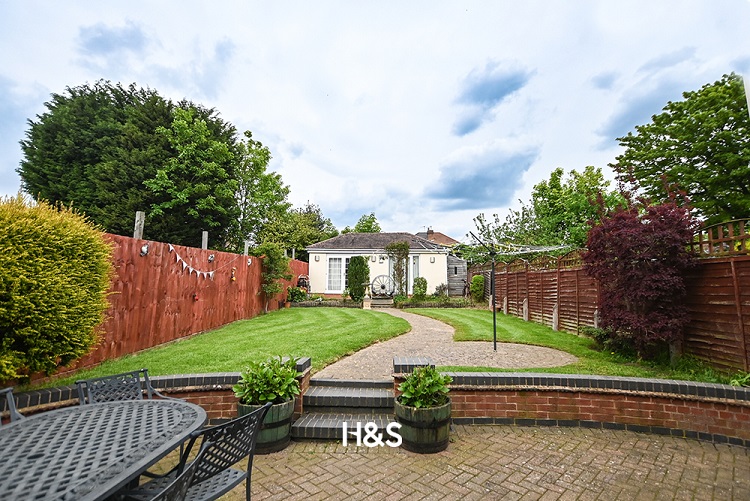 The well maintained rear garden benefits from a large patio area ideal for entertaining, a long manicured lawn with fencing to the boundaries and a further rear patio with a brick built out house, with electrics, two sets of patio doors and it can be used for multiple things such as a Gym/Games Room/Family Room and more.