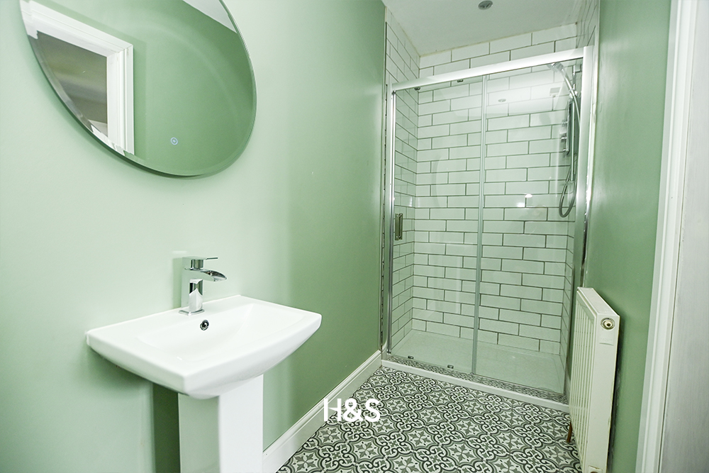 The fully tiled bathroom suite comprises of a jacuzzi style bath, enclosed shower cubicle, sink and a WC. There is a heated towel rail and obscure double glazed window to the rear.