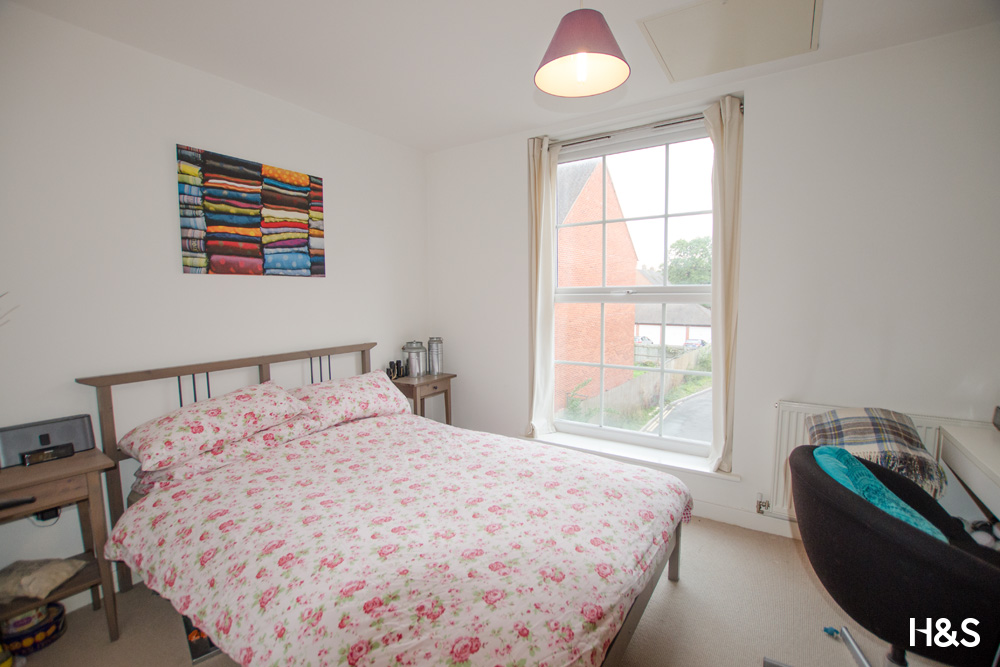 A double bedroom with a double glazed picture window to the side elevation letting in a lot of light and a central heating radiator.