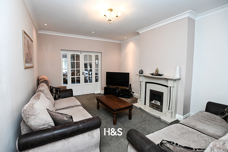 A large lounge/diner, ideal for a family home with a double glazed window to the front elevation, central heating radiator and a feature fireplace with inset fire.