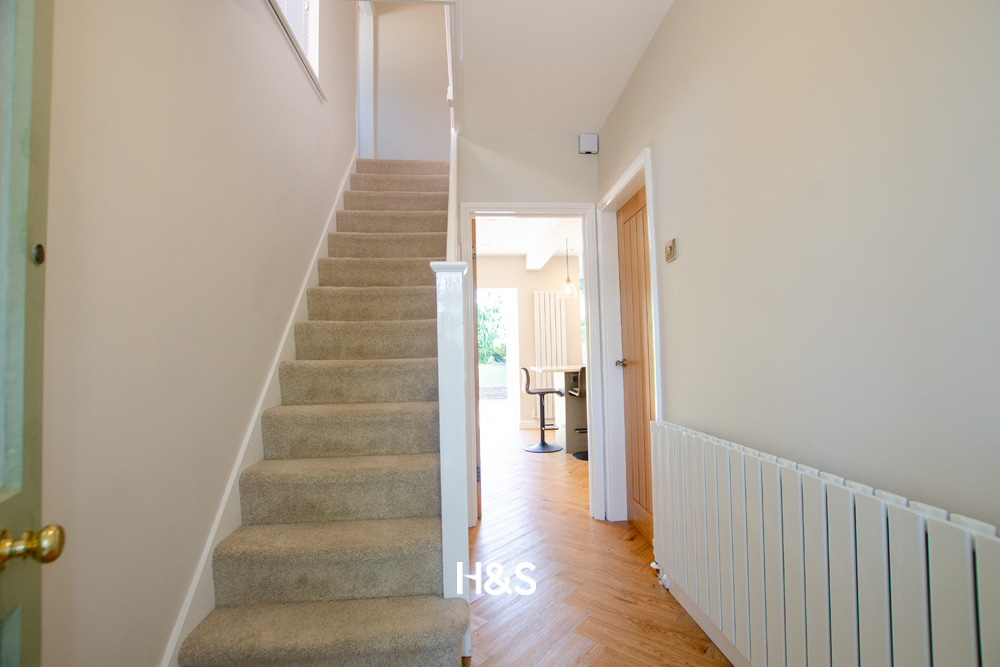 A welcoming entrance hall with stairs leading to the first floor landing, a central heating radiator and doors leading to ground floor rooms.