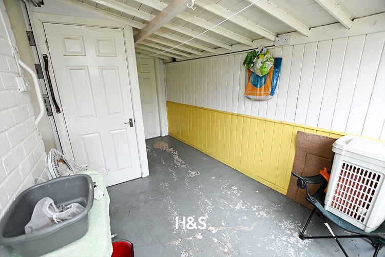 The lean-to offers a versatile space, with a door to the WC, a door to the garage, and a door leading to the private rear garden.