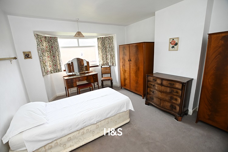 Upstairs, the landing provides access to the first-floor rooms and the loft. There are three generously sized bedrooms, with the two larger ones being double bedrooms. The first double bedroom boasts a double glazed window to the rear elevation, a central heating radiator, and ample space for wardrobes. The second double bedroom has a double glazed bay window to the front elevation, a central heating radiator, and space for wardrobes. The third bedroom is a good-sized single room with a double glazed window to the front elevation and a central heating radiator.