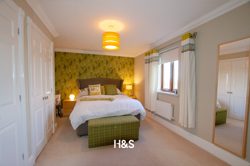 A large master bedroom benefiting from a range of built in wardrobes, a double glazed window to the front elevation, a central heating radiator and a door leading to the en-suite.